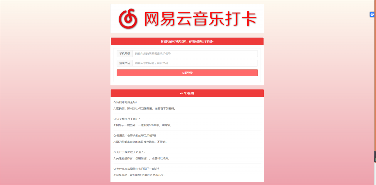 A:网易云一键签到,一键听满300首歌,刷等级。
