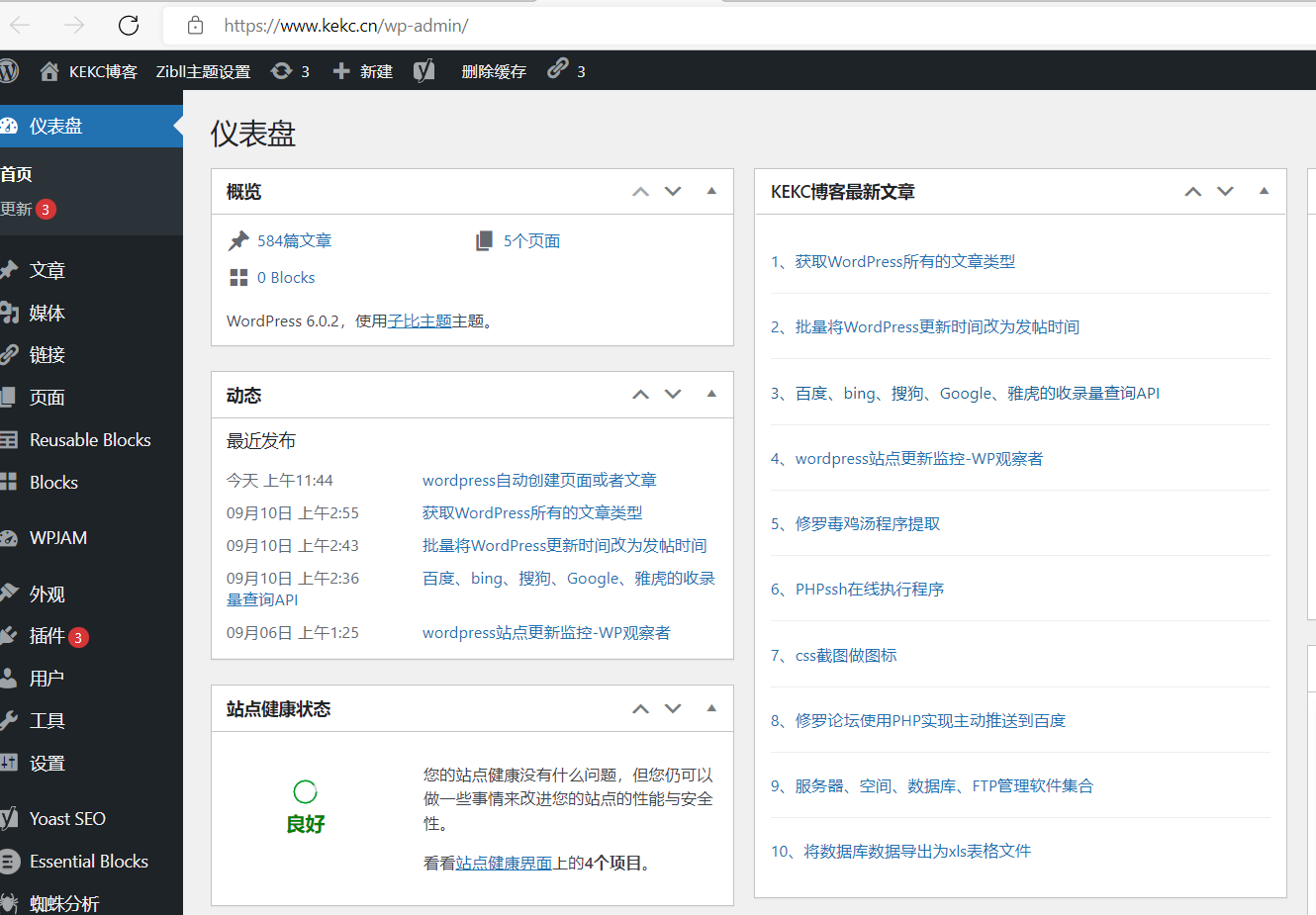 我之前开发了插件,我是自己写的一个仪表盘小部件吧,用于调用我网站的一些最新文章。效果如下图:
