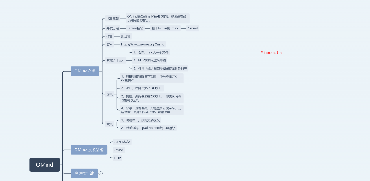 OMind基于JMind开发,提供易于搭建的PHP单文件在线思维导图程序和易于无网络浏览的单文件Html离线版思维导图程序